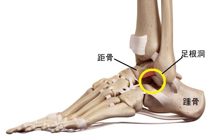足根洞は、距骨と踵骨の間に位置する錐状の小さな空間で、